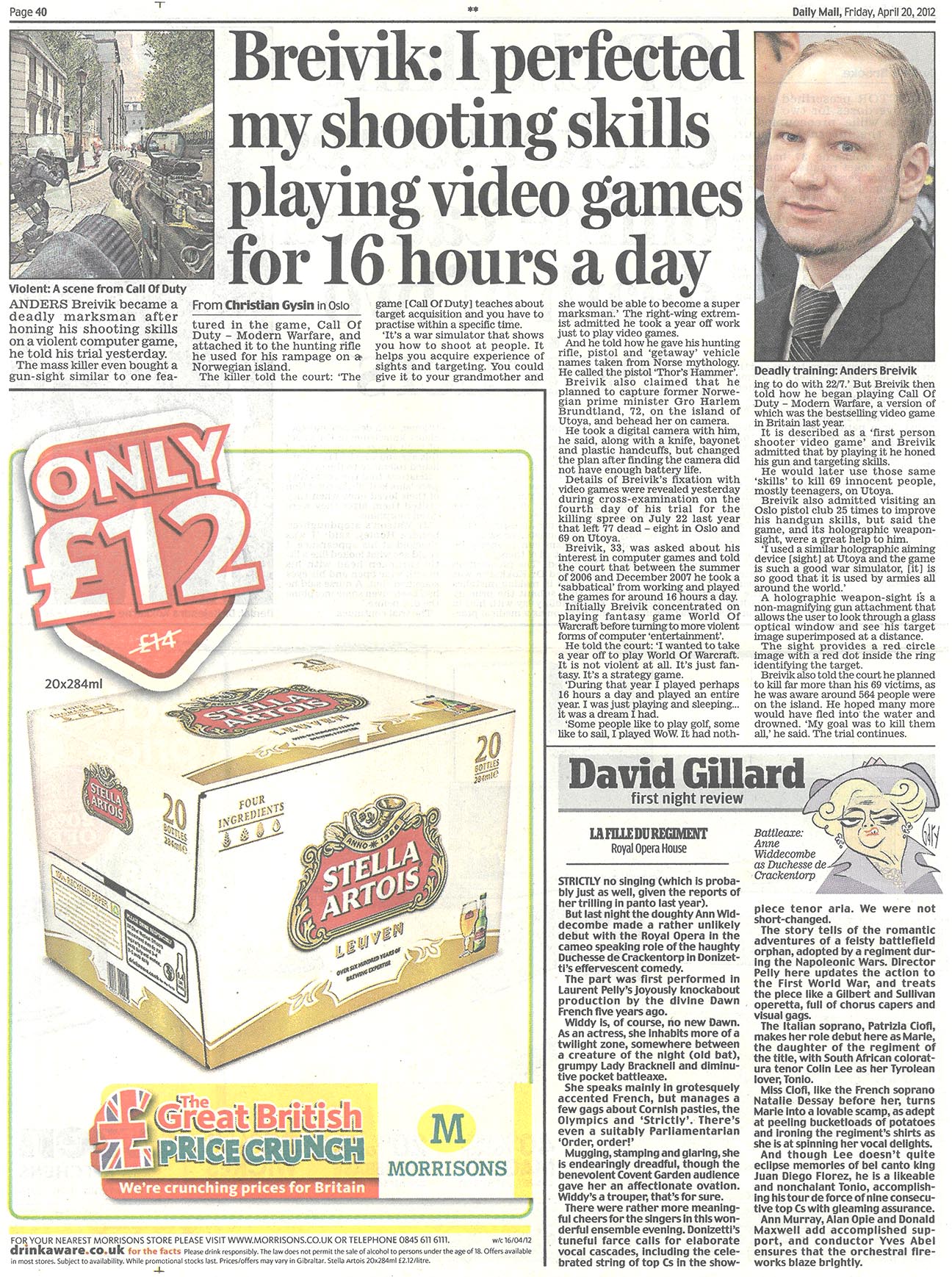 Breivik: I perfected my shooting skills playing video games for 16 hours a day