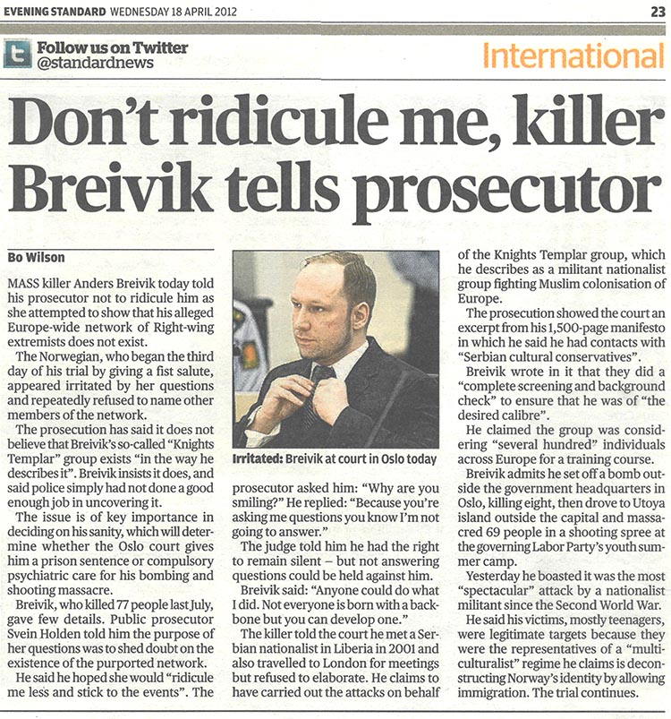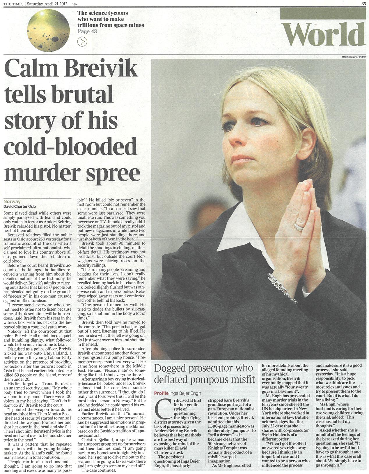 Calm Breivik tells brutal story of his cold-blooded murder spree