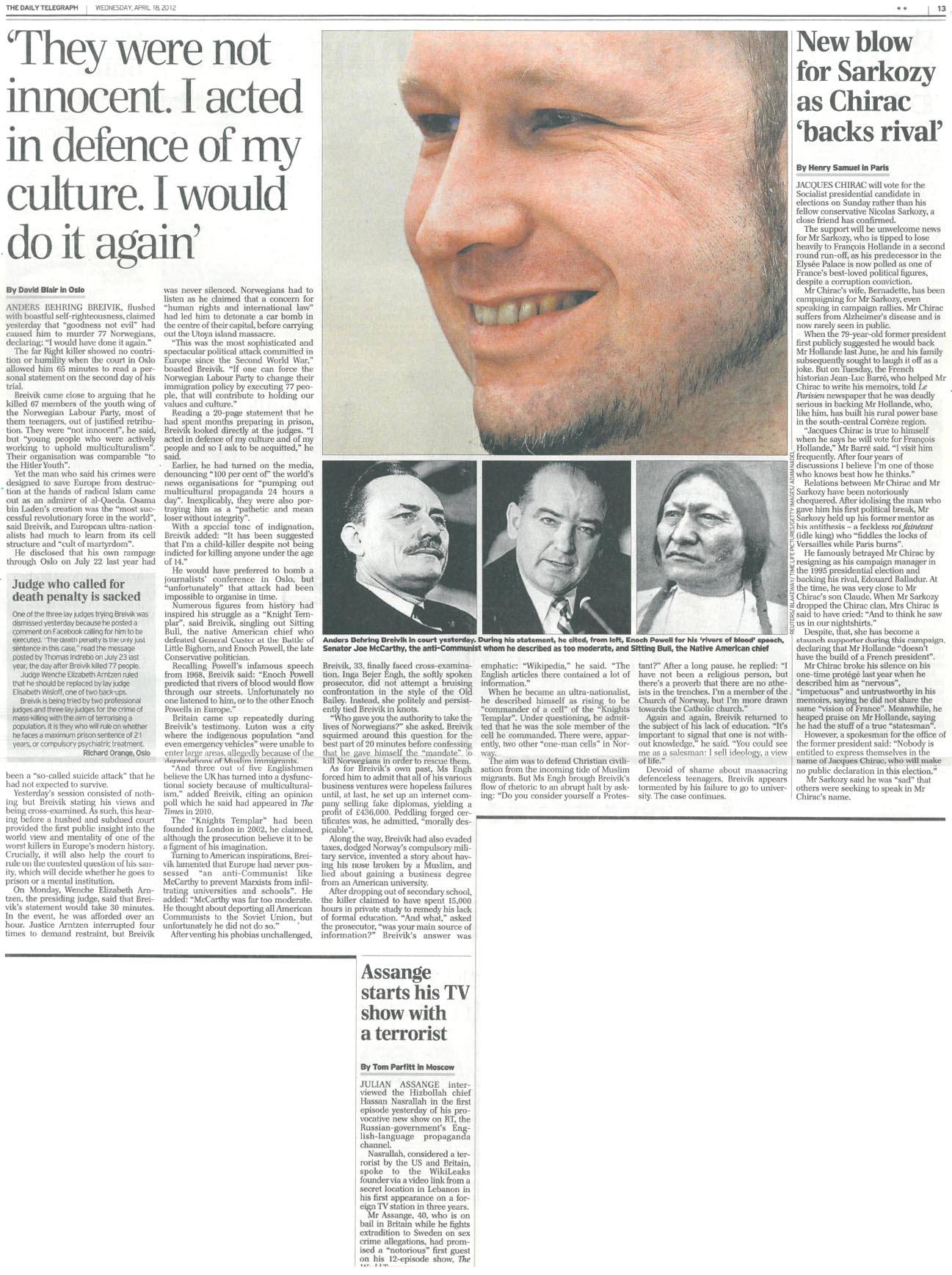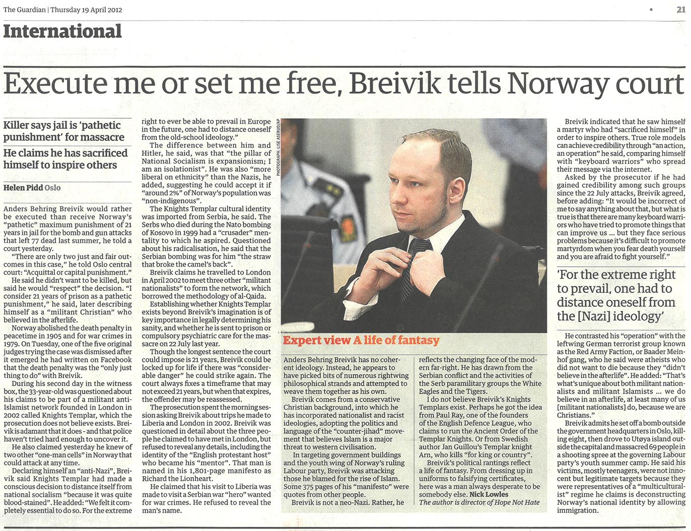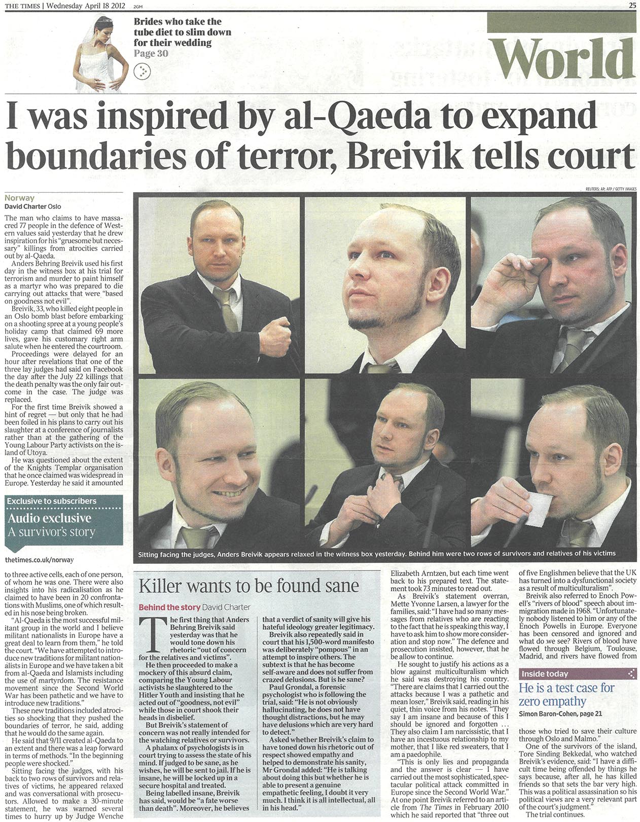 I was inspired by al-Qaeda to expand boundaries of terror, Breivik tells court