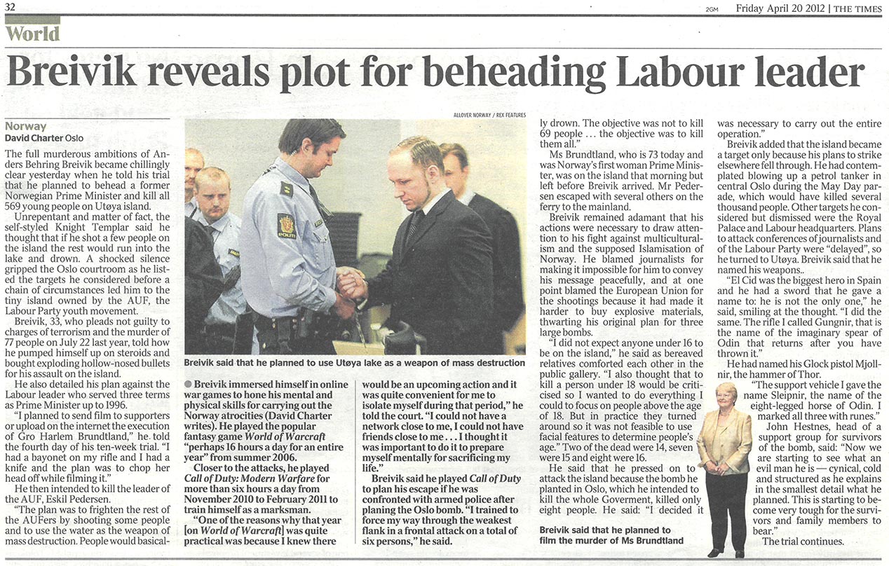 A 'war' started by the Norwegian establishment and finished beyond expectation by Anders Breivik