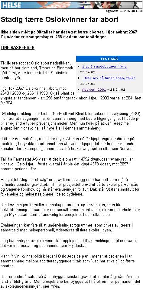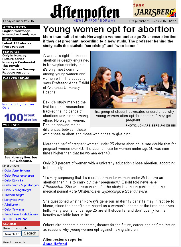 STANDIG FÆRRE OSLOKVINNER TAR ABORT
