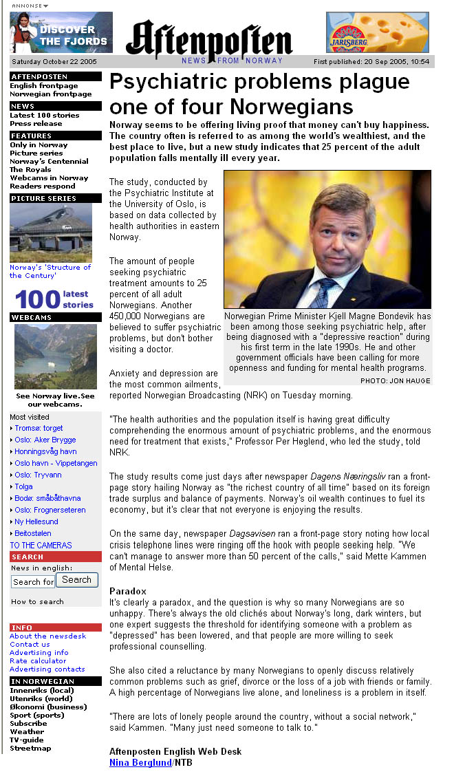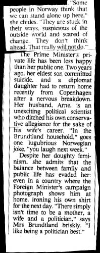Norwegian Ex - Prime Minister, Mrs Brundtland's sadness