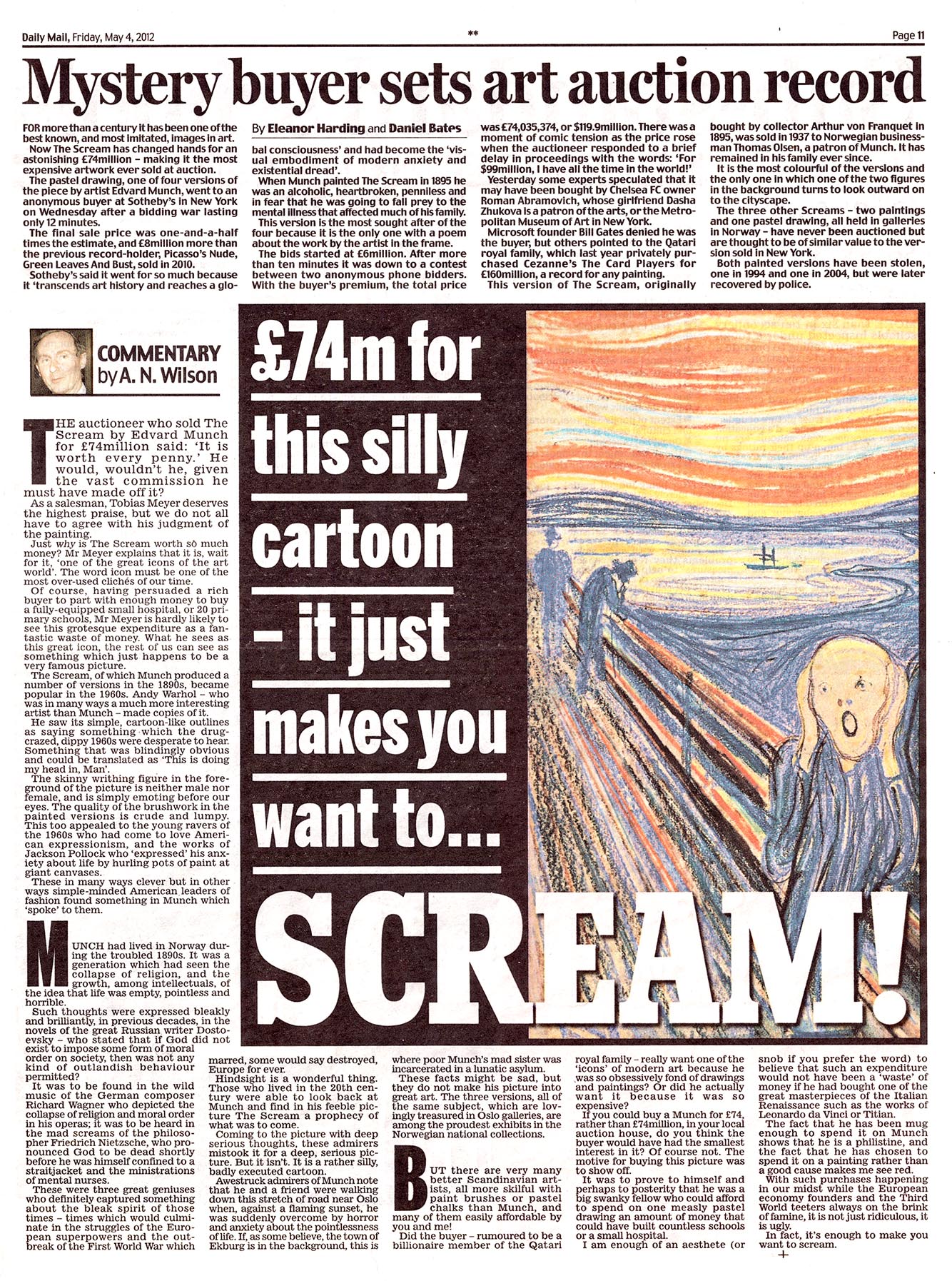 "Munch had lived in Norway during the troubled 1890's. It was a generation which had seen the collapse of religion, and the growth, among intellectuals, of the idea that life was empty, pointless and horrible."